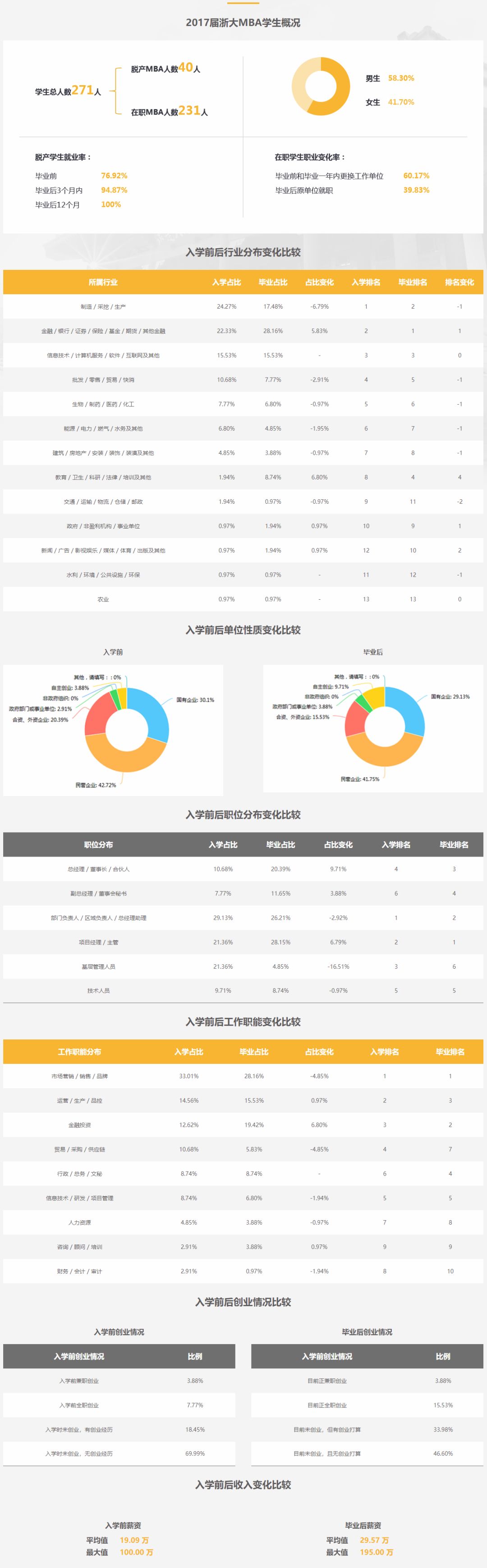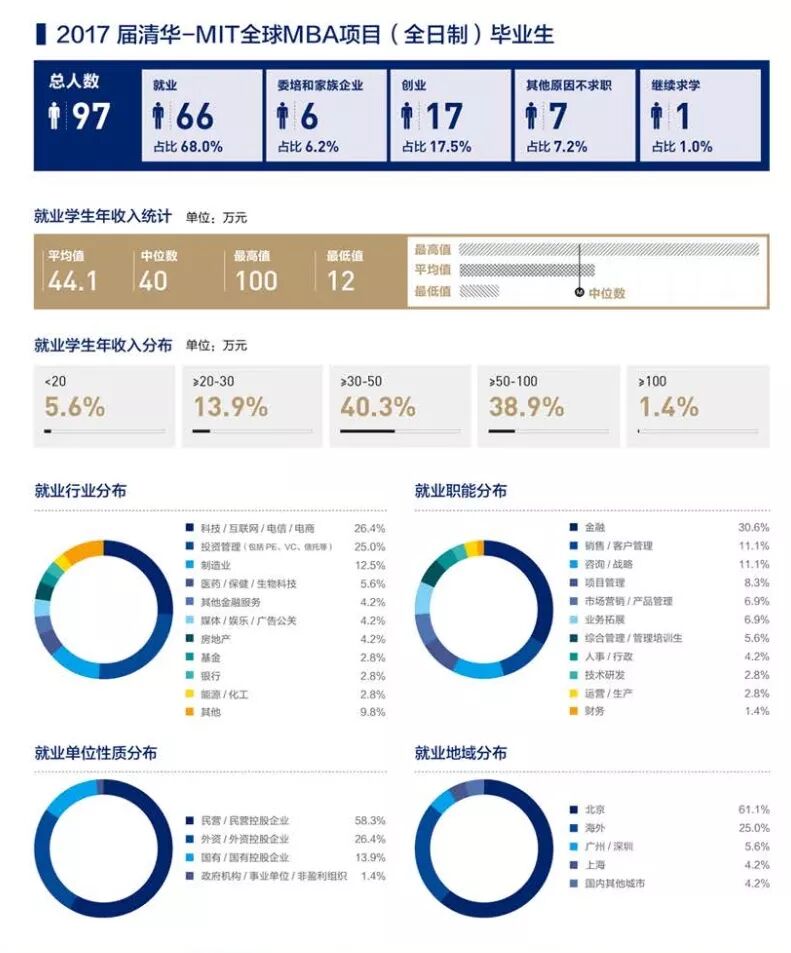 随着单证在职研究生取消和非全日制、全日制研究生通知的颁布,MBA的报考人数出现了大幅度的上涨。2017年MBA报考人数同比增长34.2%,总的暴涨趋势是显而易见的。在一份对于MBA学员的调查中发现,有48%的MBA报考者是为了获得更好的职业发展而选择攻读MBA,那么究竟MBA毕业后发展怎么样呢?这里汇总了8所院校的毕业生就业分析报告,直观地向你展示MBA考生毕业后的职业发展情况!