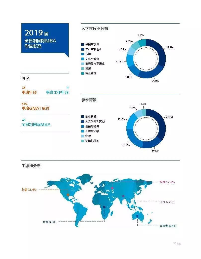 MBA2018届毕业生共183人,37.1%为海外学生(包括港澳台)。2017-2018年度招聘季中,312家公司通过中欧职业发展中心(CDC)发布了879个职位。