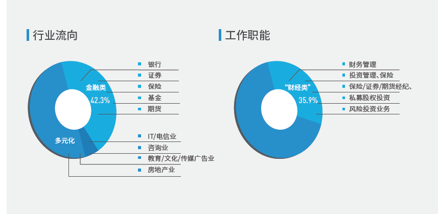 从事财务管理、投资顾问/投资管理、保险/证券/期货经纪、私募股权投资/风险投资业务等“财经类”工作职能的占主导地位,共约占总人数的35.9%。