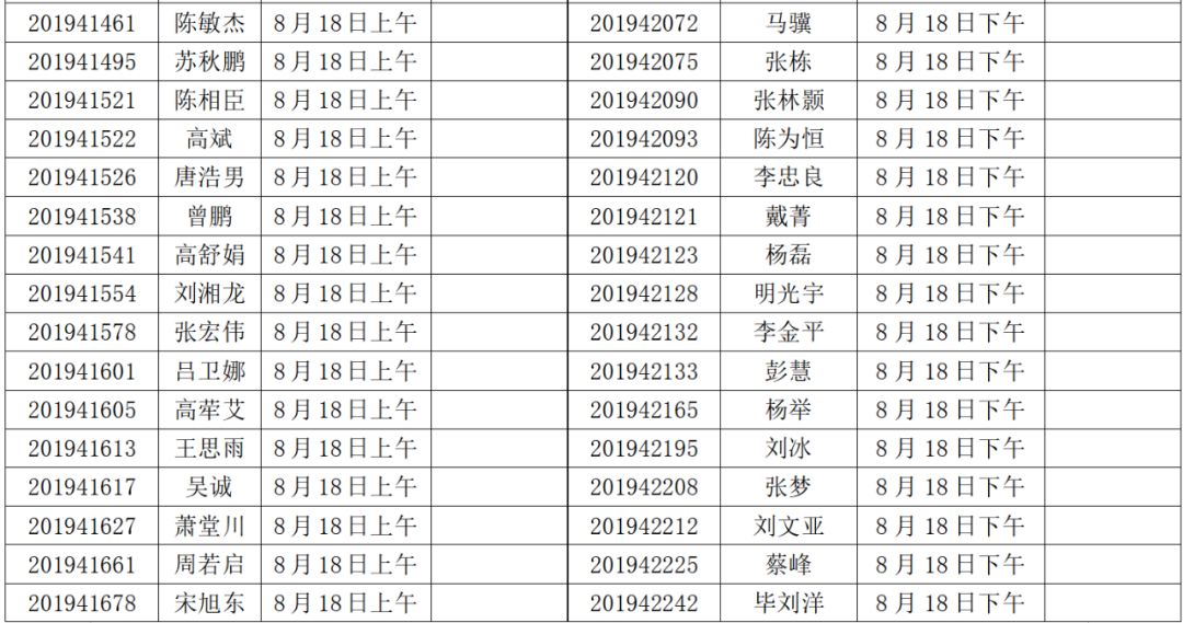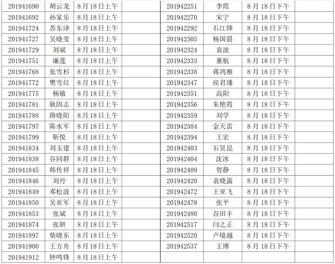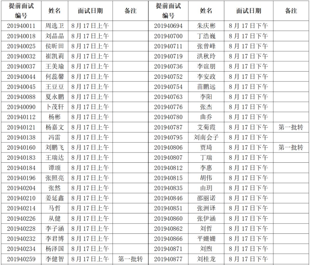 三、面试时间:2019年8月17/18日  8:30-12:00,13:30-17:00